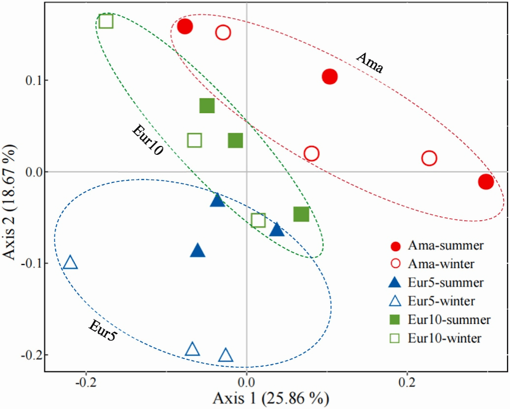 马占相思林在亚洲国家广泛分布,但近年来因根腐病和溃疡病的危害,正逐渐被桉树林取代。本研究对中国南方马占相思次生林以及由该林皆伐后改种的5年龄和10年龄的桉树林土壤中的原核生物进行了研究。通过对16S rRNA基因进行测序、对土壤理化因子的测量和分析。结果发现森林皆伐改造显著改变了土壤原核生物群落结构,而改造林经过多年恢复后,原核生物群落也经历了渐进的恢复。研究还发现,土壤pH值、含水率和总磷含量是影响土壤原核生物群落结构的关键理化因子。该研究成果得到了国家自然科学基金项目(32171760)的资助。全文链接:https://doi.org/10.1016/j.jenvman.2025.125742。